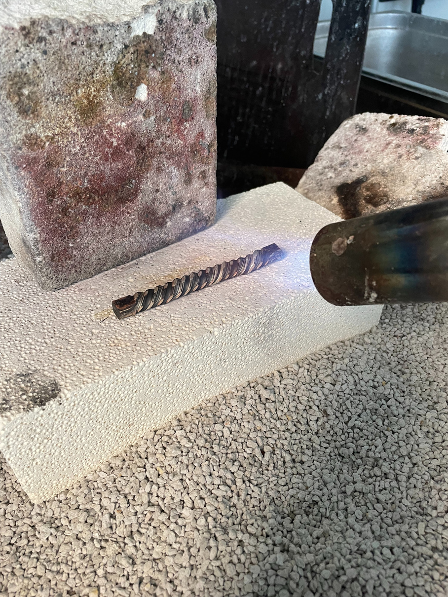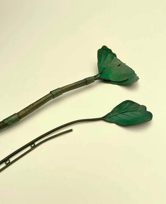 Posy gravitates towards metal working. Posy sees reusing materials as a way to preserve an object’s memory and transform it into something new. Metal is the perfect medium because of metal’s inherent malleability. By reclaiming used or broken metals and recycling them into new works, the lineage of past pieces are preserved within the new work. This point of view sparks new conversations surrounding material sourcing and sustainability, that is integral to Posy’s artistic practice and moral standing. Sustainability is crucial to their practice as Posy’s aim is to create while simultaneously reducing waste.